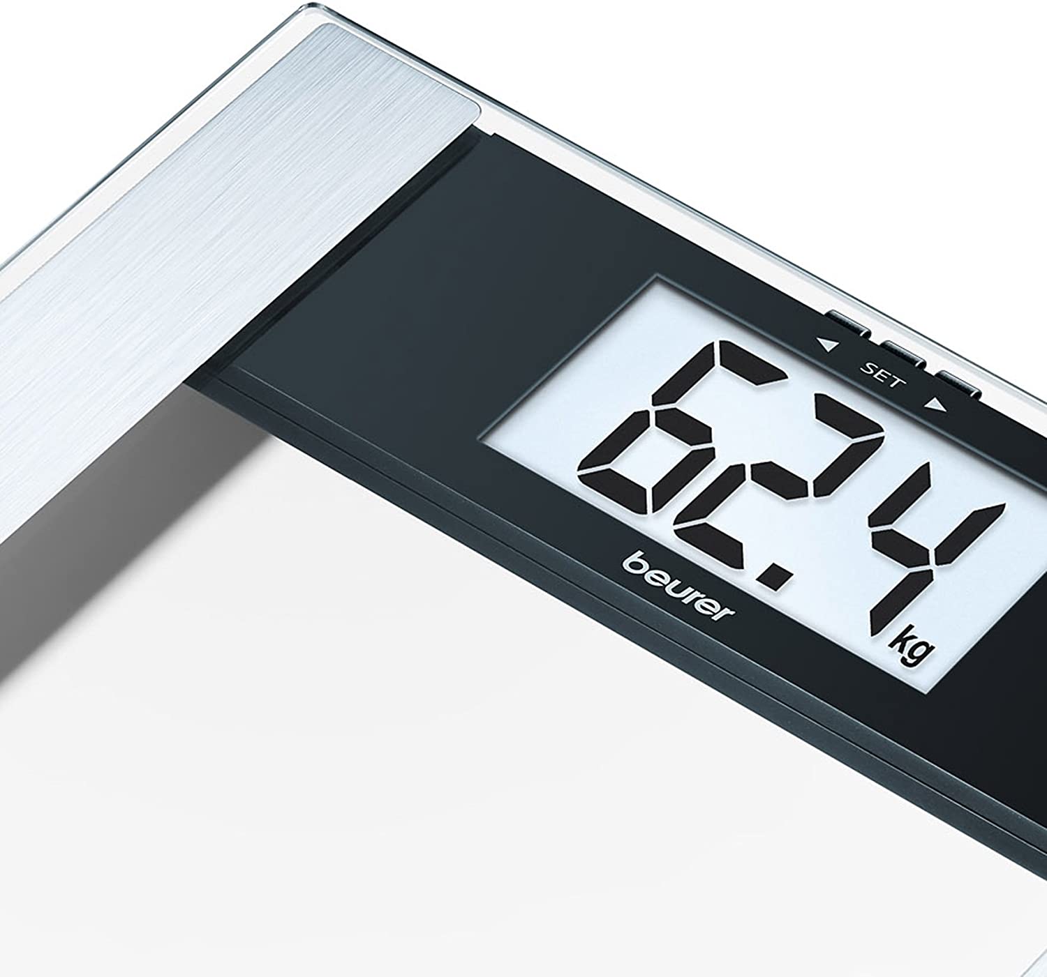 La Báscula BEURER BG-17 cuenta con un diseño y elegancia que brinda una plataforma de vidrio templado y electrodos de acero inoxidable con pantalla extra grande para mejor visualización. Ofrece lectura de IMC además de peso, % de grasa corporal, % de agua corporal y masa muscular.