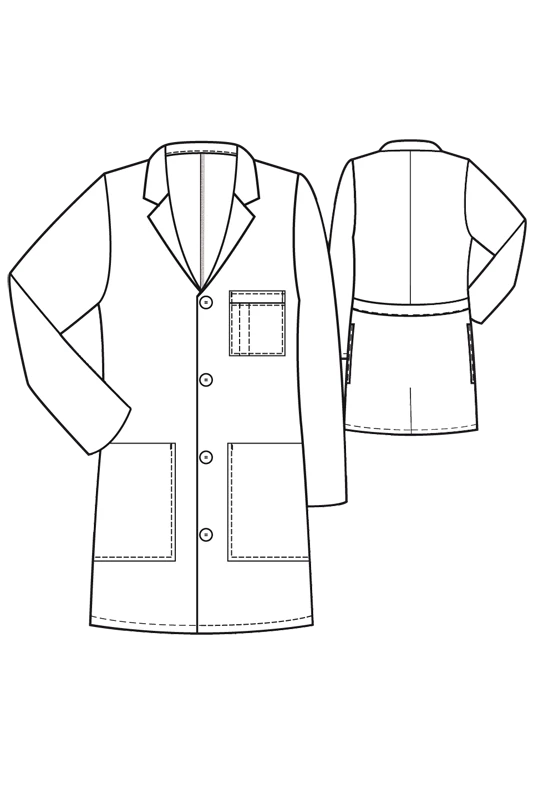 Cuenta con un bolsillo doble con ranura para bolígrafo en el pecho del lado izquierdo, dos bolsillos en la parte delantera inferior y dos bolsillos internos.