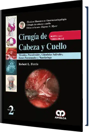 | SECCIÓN 1: CUELLO 1.- Biopsia del ganglio centinela en el cáncer de cavidad oral y tracto aerodigestivo superior. 2.- Disección selectiva de cuello. 3.- Disección superselectiva de cuello para carcinoma del tracto aerodigestivo superior. 4.- Disección radical de cuello modificada. 5.- Cirugía robótica para disección radical de cuello modificada en el cáncer de tiroides; técnica quirúrgica sin gas, abordaje transaxilar. 6.- Disección radical de cuello. 7.- Disección de cuello asistida por robot vía estiramiento facial modificado o abordaje retroauricular. 8.- Disección posterolateral del cuello. 9.- Manejo del carcinoma de origen primario desconocido de cabeza y cuello. 10.- Técnica de resección de schwannoma de cuello. 11.- Técnicas para la resección quirúrgica de tumores del cuerpo carotídeo. 12.- Paragangliomas del vago. 13.- Laringoplastia de medialización intraoperatoria (tiroplastia Tipo 1). SECCIÓN 2: TIROIDES 14.- Tiroidectomía abierta. 15.- Tiroidectomía robótica para cáncer de tiroides; empleando un abordaje transaxilar sin gas. 16.- Cirugía del bocio. 17.- Técnica de ejecución/tiroidectomía reoperatoria. 18.- Tratamiento quirúrgico de cáncer de tiroides, localmente invasivo. 19.- Disección del compartimiento central del cuello. 20.- Manejo del nervio laringeo superior durante la tiroidectomía. SECCIÓN 3: PARATIROIDES 21.- Cirugía de hiperparatiroidismo secundario. 22.- Paratiroidectomía video-asistida. 23.- Reintervención quirúrgica de la paratiroides por hiperparatiroidismo primario. 24.- Paratiroidectomía no localizada. 25.- Parotidectomia superficial. 26.- Disección extracapsular de los tumores de la parótida. 27.- Parotidectomía total. 28.- Parotidectomía video-asistida mínimamente invasiva. 29.- Resección de tumores en el espacio parafaríngeo preestiloideo. 30.- Resección de una masa en el espacio bucal. 31.- Resección de la glándula submandibular. 32.- Nasofaringectomía endoscópica. 33.- Abordaje transpalatino para una nasofaringectomía. 34.- Resección robótica de un cáncer nasofaríngeo recurrente. 35.- Rotacion del maxilar. Índice alfabético. |