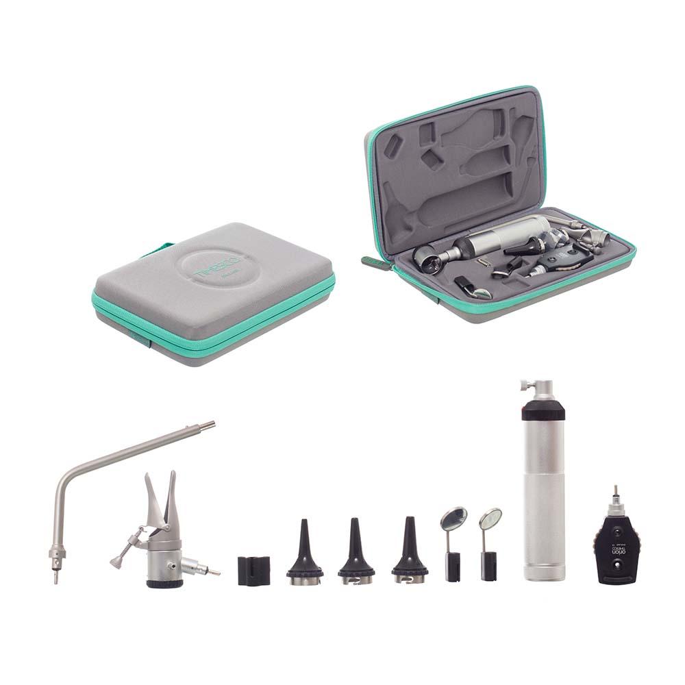 Estuche de diagnóstico Timesco. Con tecnología de iluminación Xenón, ligero Y ergonómico. Producto hecho en Inglaterra con certificado ISO13485, que asegura a sus usuarios una alta calidad, durabilidad y facilidad de uso. Material:Acero inoxidable acabado mate